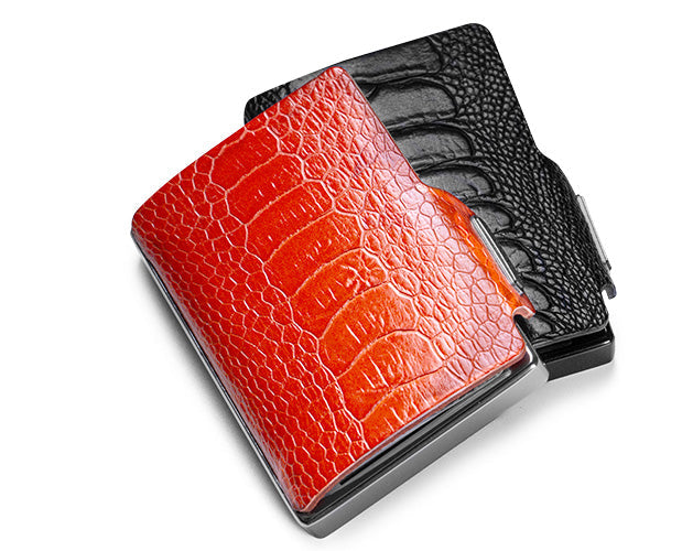 La scocca di Mondraghi è studiata per custodire saldamente carte di credito, badge e altre tessere essenziali. Il sistema a scatto blocca le carte in posizione, prevenendo qualsiasi fuoriuscita accidentale, mentre con un semplice gesto del pollice puoi estrarle con facilità. Sicurezza e praticità, sempre a portata di mano.