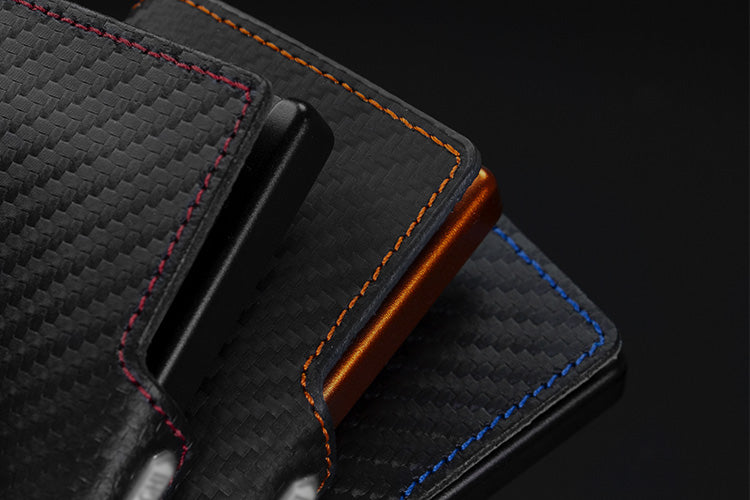 Il modello Racing Carbon Plus si arricchisce di un dettaglio distintivo: la cucitura perimetrale, proposta in tre varianti cromatiche – Red, Blue e Orange – per incontrare meglio i gusti di ognuno. Ogni colore è studiato per esaltare l’effetto tecnico della finitura “carbon” e conferire al mini wallet un carattere ancora più dinamico. Un tocco di design che permette di scegliere la versione più vicina al proprio stile, senza rinunciare all’eleganza sportiva.